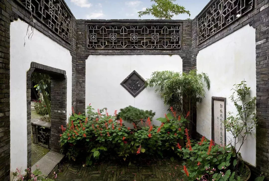 鄭板橋故居坐北朝南,為8間清代民房建筑,粉墻黛瓦,蘭竹蕭蕭,庭院清幽。說是故居,更像是一座小小的庭園,廂房為書齋,憑窗可見園內(nèi)竹影婆娑,園子里有亭臺(tái)回廊、荷塘花香,顯得清雅幽靜。