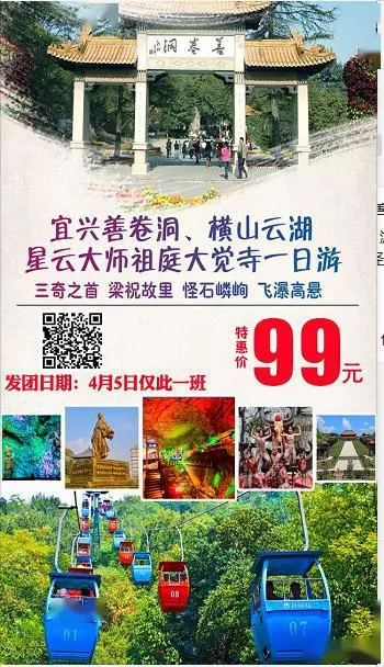 宜興善卷洞、橫山云湖、星云大師祖庭大覺寺一日游成人兒童:99元