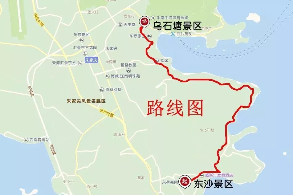 東沙景區(qū)—沿烏石塘環(huán)島公路—烏石塘景區(qū)(全程8公里,約2小時(shí)路程