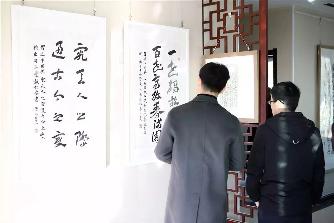 一幅幅書畫作品或排列在長(zhǎng)廊兩側(cè),或布置在一個(gè)個(gè)新落成的小院里,吸引了一大批貴客前來(lái)品評(píng)欣賞,讓江南溫泉度假村充滿了濃濃的文化和學(xué)術(shù)氛圍。