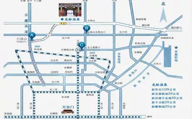 八達(dá)嶺高速、京承高速到北六環(huán)“小湯山”出口,向小湯山方向,大柳樹十字路口西行500米,小湯山鎮(zhèn)人民政府北側(cè)。