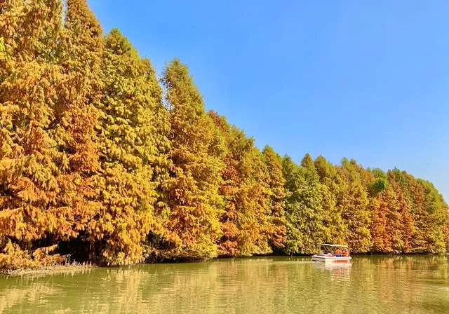 來上海海灣國(guó)家森林公園感受湖畔的紅葉