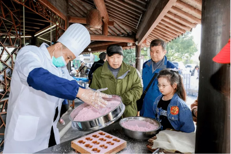 本次美食節(jié)期間,古鎮(zhèn)通過一系列美食技藝的活態(tài)展示,向游客沉浸式全景呈現(xiàn)了切胡蘿卜、烘熏青豆、風枵制作、蘇式糕點制作技藝,以及四碗茶的茶道絕活。“饞貓奇遇記”的游線串聯(lián)起了古鎮(zhèn)的每個活動,讓游客深刻感受到了震澤美食文化的魅力。