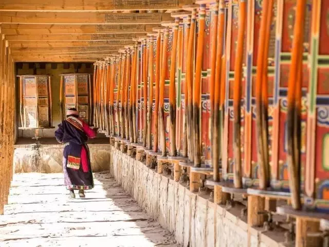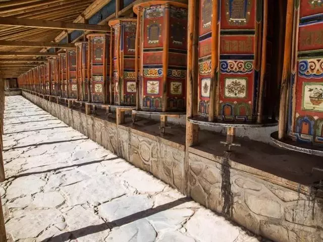 拉卜楞寺的一個最大的亮點,便是擁有世界上最長的轉(zhuǎn)經(jīng)長廊,共有2000多個轉(zhuǎn)經(jīng)桶,小的轉(zhuǎn)經(jīng)筒周長只有一米左右,而大的轉(zhuǎn)經(jīng)筒需要三四個人才能合抱住。