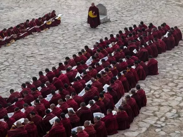 大多數(shù)情況下,辯經(jīng)活動都采用一對一的形式,一個站著問,一個坐著答,其余的同班同學就在周圍坐成一圈觀摩。不論是辯經(jīng)的雙方還是旁聽的學生,沒有人會在乎辯經(jīng)的結(jié)果誰輸誰贏,而是更多關注這一次的辯題到底要如何理解。一旦辯論結(jié)束,學生們都會回去翻閱相關的書籍,進行更深入的思考。