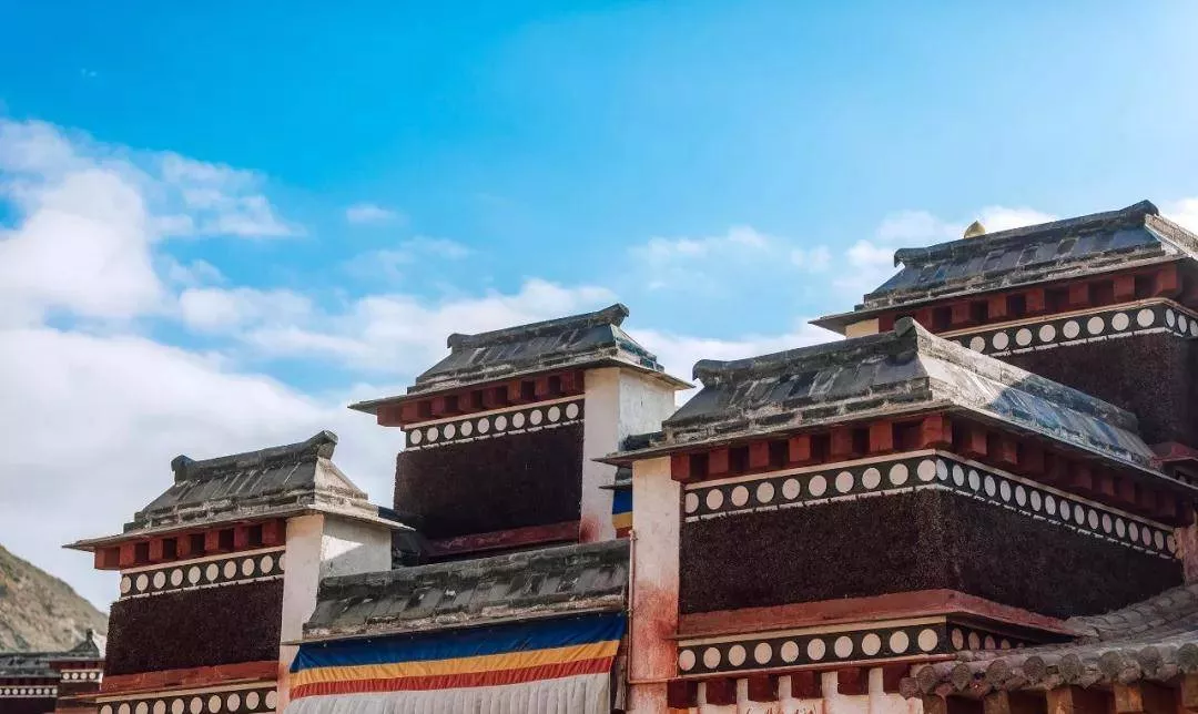 拉卜楞寺的建筑,大多下寬上窄,近似梯形,外石內(nèi)木,有“外不見木,內(nèi)不見石”之諺。