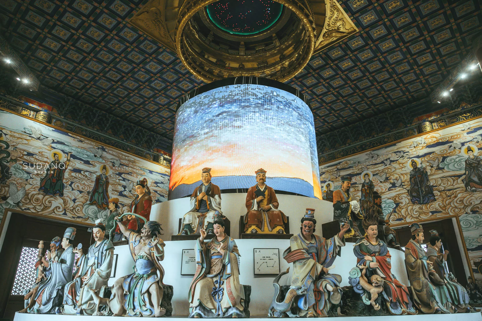 以中軸大殿為節(jié)點(diǎn)一路參觀,每走進(jìn)一個院落皆不禁嘆為觀止,每踏入一座殿堂都贊嘆不已,這些大殿集中供奉了道教三清尊神、四御尊神、民俗眾神及道教宗師等各路福神,充分彰顯了“道源仙都”的大道氣魄。