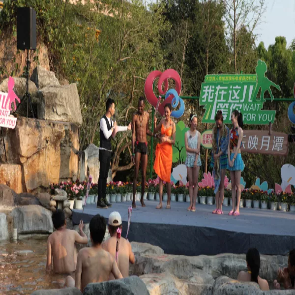 映月潭的露天泡池有40多個(gè)功能各異的露天泡池掩映在鮮花綠樹(shù)之中,利用地形呈現(xiàn)自然分布,錯(cuò)落有致,頗有種通過(guò)五行八卦之術(shù)精心布置的感覺(jué);利用高差形成高溫、中溫、低溫泡池,實(shí)現(xiàn)溫泉水的最有效利用,用“人間寒熱可一試、世態(tài)炎涼又何妨”的文化理念詮釋人生,充分發(fā)揮映月潭“映月”文化的心理感受空間,充分享受云南自然氣候條件優(yōu)越的優(yōu)勢(shì)。