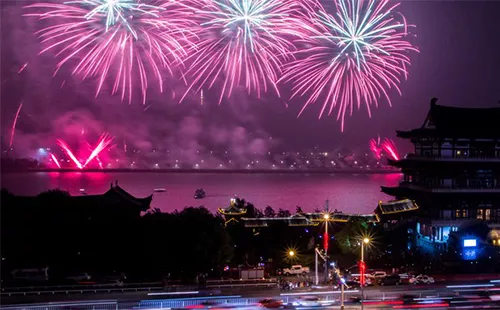 橘子洲位于長沙市區(qū)中湘江江心,是湘江下游眾多沖積沙洲之一。橘子洲,西望岳麓山,東臨長沙城,四面環(huán)水,綿延數(shù)十里,狹處橫約40米,寬處橫約140米,形狀是一個(gè)長島,是長沙的重要名勝之一,也是國家級(jí)重點(diǎn)風(fēng)景名勝區(qū)。橘子洲焰火早已成為長沙一張亮麗的旅游名片,每場燃放時(shí)間長20分鐘,在端午佳節(jié)千萬不要錯(cuò)過漫天煙火燦爛綻放的時(shí)刻。橘子洲焰火佳觀看地點(diǎn):杜甫江閣周邊、四羊方尊廣場 、風(fēng)帆廣場、岳麓山觀景臺(tái)。