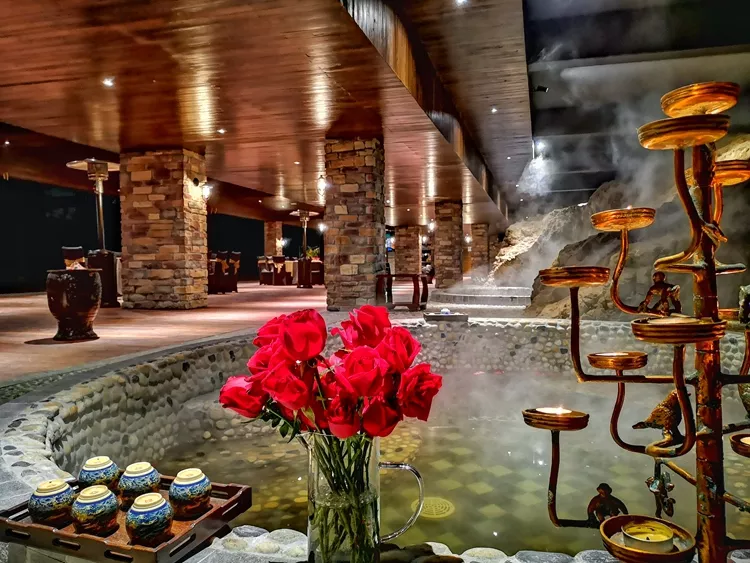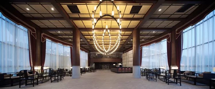 步入酒店大廳視線的盡頭有一處靜態(tài)的水池,水池上放置十二座雕刻有十二生肖的石柱,整個酒店設(shè)計(jì)空間彰顯中式傳統(tǒng)文化,氛圍古樸、寧靜,讓人得到精神上的徹底放松。