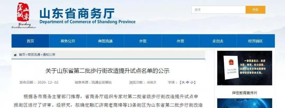 2020年7月,根據(jù)黨中央、國務(wù)院有關(guān)文件精神,結(jié)合我省實際,制定本行動計劃,省商務(wù)廳提出支持打造提升一批基礎(chǔ)較好、潛力較大的步行街,力爭用2至3年時間,培育一批具有國際、國內(nèi)領(lǐng)先水平的步行街。 12月2日,山東省商務(wù)廳發(fā)布《關(guān)于山東省第二批步行街改造提升試點名單的公示 》。經(jīng)省商務(wù)廳組織專家研究,濰坊十笏園文化街——作為濰坊唯一一家商業(yè)步行街成功晉級,入圍試點名單!