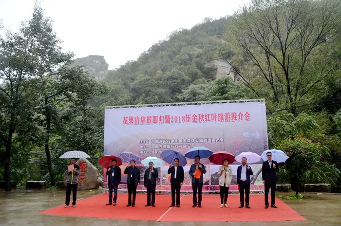 河南旅游發(fā)展網(wǎng) 洛陽(yáng)訊 春曉 細(xì)雨微微,山霧蒙蒙。9月16日上午,由花果山管委會(huì)主辦,河南萬(wàn)景旅游有限公司、洛陽(yáng)全域融媒協(xié)辦的“花果山獼猴回歸暨2018金秋紅葉旅游推介會(huì)”在花果山景區(qū)隆重舉行。 洛陽(yáng)花果山國(guó)家森林公園地處洛陽(yáng)以西90公里的宜陽(yáng)縣花果山鄉(xiāng)境內(nèi),總面積4810公頃,大小山峰80余座,景點(diǎn)200余處。分四大景區(qū):岳頂風(fēng)光區(qū)、花山覓圣區(qū)、石院墻自然保護(hù)區(qū)、七峪飛瀑區(qū)。主峰海拔1831.8米,東峰岳頂海拔1643米,森林覆蓋率達(dá)90%以上,1993年經(jīng)原國(guó)家林業(yè)部批準(zhǔn)成立國(guó)家級(jí)森林公園。 金洪敏副縣長(zhǎng)講話 花果山歷史悠久,自然風(fēng)光秀美,西游文化積淀豐厚。是西游故事的早期滋生地和重要傳播地。 為不斷豐富完善花果山旅游品牌,花果山管委會(huì)深入挖掘自然資源,加快推進(jìn)旅游項(xiàng)目建設(shè),逐步形成休閑、度假、康養(yǎng)等多元化旅游產(chǎn)品?;ü焦芪瘯?huì)為打造智慧旅游景區(qū),在全景區(qū)主要景點(diǎn)已經(jīng)實(shí)現(xiàn)了WiFi全覆蓋。同時(shí),依托“中國(guó)西游文化之鄉(xiāng)”的優(yōu)勢(shì),不斷挖掘西游文化內(nèi)涵,推出西游故事演藝、獼猴趣味逗樂(lè)等主題活動(dòng)。 在獼猴重新落戶花果山和漫山紅葉即將到來(lái)之際,來(lái)自宜陽(yáng)縣相關(guān)部門及三門峽、洛陽(yáng)周邊的幾十家媒體、旅行社代表百余人參加了這次旅游推介會(huì),推介會(huì)上,花果山管委會(huì)主任詳盡介紹了花果山的自然景觀、人文景觀、西游文化以及景區(qū)的發(fā)展歷程和美好前景;宜陽(yáng)縣領(lǐng)導(dǎo)對(duì)花果山的旅游事業(yè)做出了充分肯定并給予很高的期望;花管委職工們?yōu)榇蠹覂A情演繹了一場(chǎng)別開生面的西游故事:《女兒情》、《天竺少女》、《師徒相聚花果山》等,精彩紛呈,將本次盛會(huì)推向了高潮。 節(jié)目表演結(jié)束后,參會(huì)代表熱情發(fā)言、現(xiàn)場(chǎng)互動(dòng),并集體參觀了花果山獼猴表演 和水簾洞等景點(diǎn)。 蒙蒙細(xì)雨籠罩花果山,推介會(huì)在一片歡聲笑語(yǔ)的熱烈氣氛中圓滿收官。