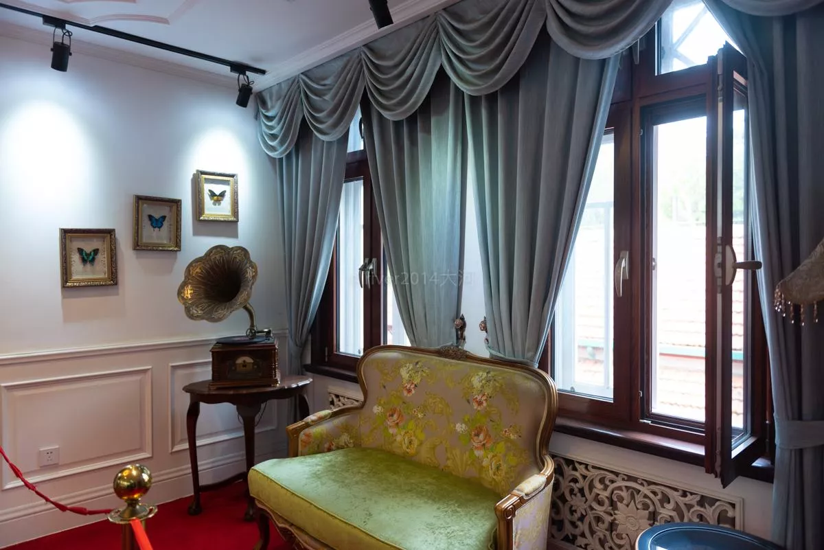 因為影后胡蝶在此住過,所以這座小樓就叫“蝴蝶樓”,一個非常好聽的名字。沿著樓梯走到二樓,就是當年胡蝶住過的臥室和客廳,如今已經(jīng)變成了展室。