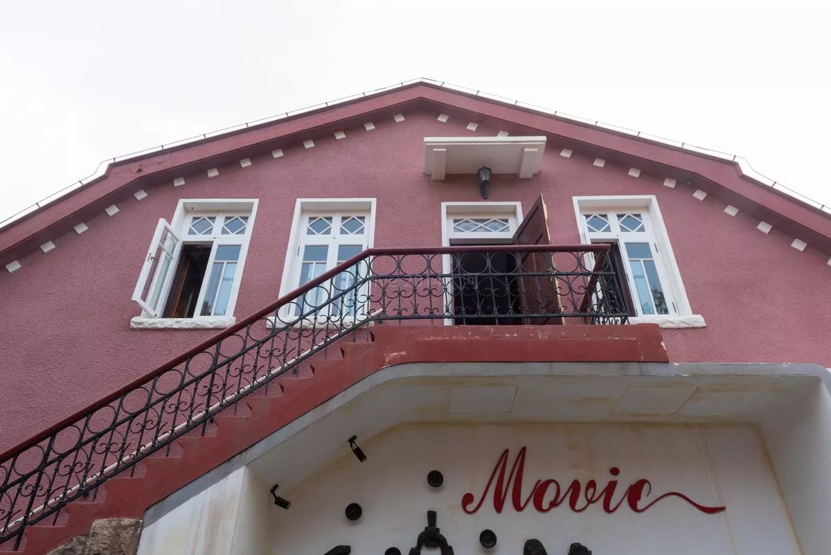 磚紅色墻體匹配白色的門窗、立柱、陽臺和轉角裝飾,讓這座連同院落只有843平方米的別墅,更顯明快亮麗。據(jù)說蝴蝶樓出自中國建筑師劉耀辰與俄國建筑師拉夫林且夫的合璧設計,屬于折中主義建筑,也就是不講求固定法式,只重純粹形式之美的建筑風格。在這樣一座不拘一格的現(xiàn)代老建筑中,青島與電影的故事綿延近百年,同樣不拘一格。