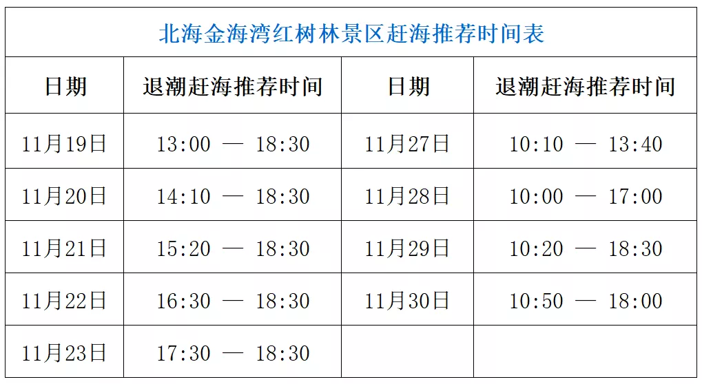 11月下旬金海灣紅樹林景區(qū)趕海推薦時(shí)間表