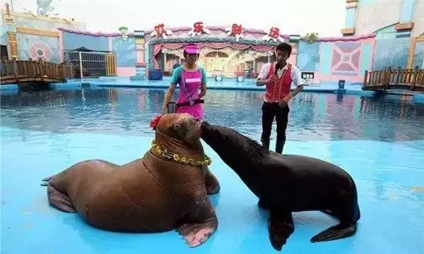 劇場內(nèi)海獅、海象等動物明星將