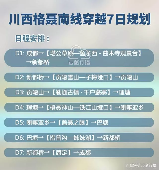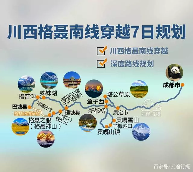 川西格聶南線穿越7日旅游攻略路線圖(原創(chuàng)),理塘巴塘環(huán)線