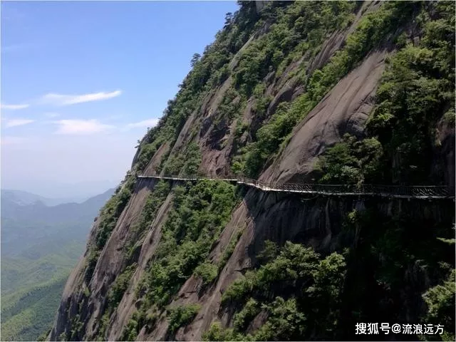 不管是徒步爬山還是乘坐索道進山,都要匯合于索道左溪上站。在索道左溪上站便是環(huán)靈山的棧道。高空棧道平均海拔在1200米左右,繞靈山一圈,大約有8000米長。靈山棧道是這里的一大特色,所有的精華景觀都集中在棧道附近。