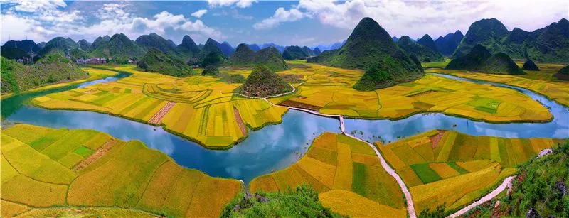 多元素融匯,構(gòu)成八寶田園綜合體景區(qū)。省級(jí)風(fēng)景名勝區(qū)八寶位于廣南縣八寶鎮(zhèn),距離廣南縣城83公里,國道323線、G80廣昆高速穿境而過,境內(nèi)植被茂密,氣候宜人,物產(chǎn)豐富。以聞名全國的八寶貢米產(chǎn)業(yè)群為切入點(diǎn),對此地進(jìn)行保護(hù)開發(fā),并通過深層次科研挖掘,成功冠以全國稻作文化發(fā)源地IP形象,整體呈現(xiàn)的是沃野千里、金色喜人的稻作田園人文景觀,壯麗秀美,宛如畫卷。