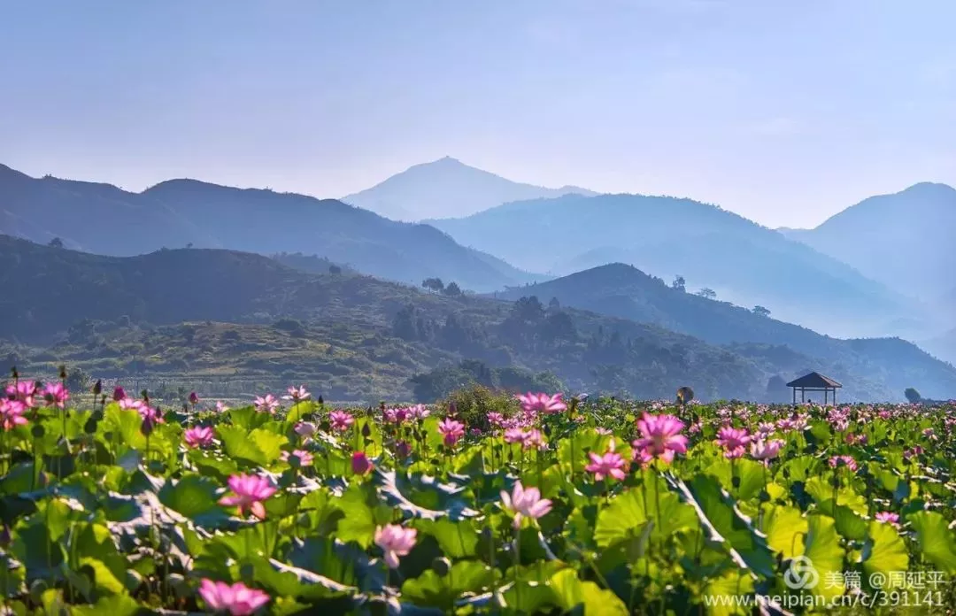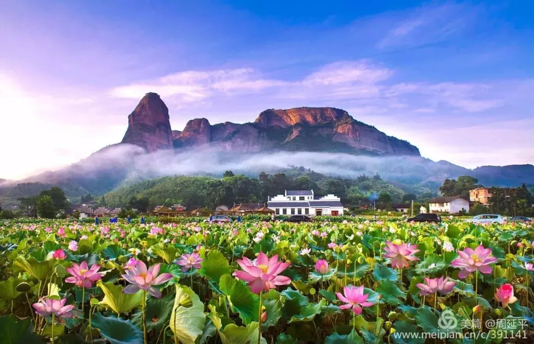 若是七八月來到通天寨,山下的荷花盛開,在荷花園里以荷塘為前景拍通天寨丹霞山體的全景照,景致最佳。