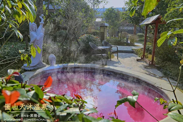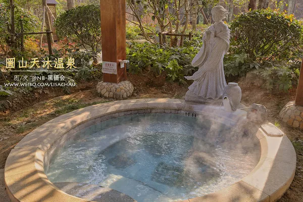 露天溫泉區(qū)有玫瑰花池,檸檬湯池,牛奶湯池,紅酒湯池,艾草湯匙...等38個(gè)特色湯匙。