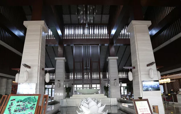 酒店大堂相當(dāng)寬敞大氣,禪意濃濃。