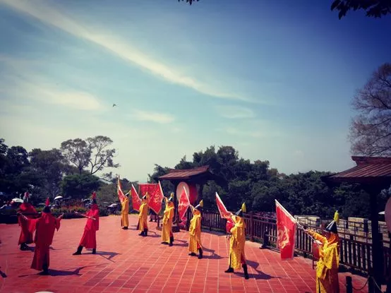迎客儀式表演項(xiàng)目表現(xiàn)的是胡里山炮臺(tái)建成時(shí),福建水師提督帶領(lǐng)眾將士打開大門、旗舞迎客的場(chǎng)景。該項(xiàng)目旨在宣揚(yáng)炮臺(tái)“八閩門戶、天南鎖鑰”的威武。