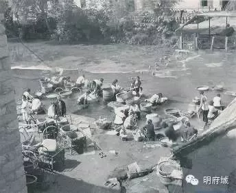 1942的照片中,南珍珠泉邊除了洗衣的婦女外,又多了些執(zhí)筐的男人,那些大大小小的柳條筐是發(fā)豆芽的工具。上世紀(jì)三十年代至五十年代,來自濟(jì)南西北鄉(xiāng)匡山莊的村民來到南珍珠泉附近,利用泉水發(fā)豆芽、磨豆腐販賣,用泉水制作的豆芽、豆腐鮮嫩爽口,因此得到周圍居民和餐飲商家的歡迎,在南珍珠泉東面不遠(yuǎn),至今還有一處小泉池,名豆芽泉。一直是濟(jì)南護(hù)城河泉水邊一道獨(dú)特的風(fēng)景