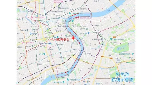 主要航線:十六鋪三號(hào)碼頭→近盧浦大橋折返→十六鋪三號(hào)碼頭