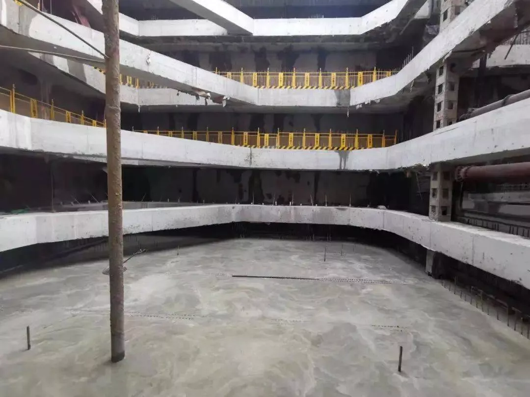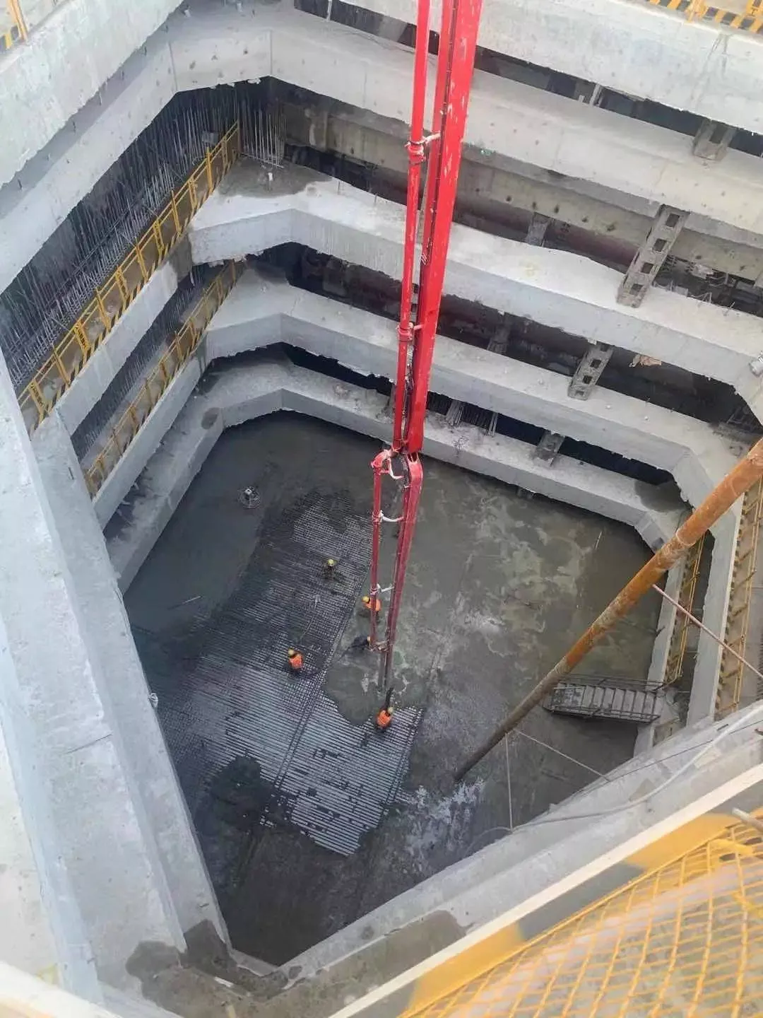 施工方 139天內(nèi)完成樁基、槽壁加固、地連墻等圍護(hù)施工, 110天內(nèi)順利完成A區(qū)共計(jì)約5.6萬(wàn)方土方開(kāi)挖、支護(hù)工程、機(jī)架段混凝土底板工程。此次福建北路工作井底板大體積混凝土澆筑完成, 標(biāo)志著整個(gè)A區(qū)機(jī)架段及工作井基坑全面封底。
