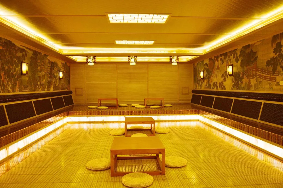 汗蒸區(qū)共6個汗蒸房,其中有托瑪琳汗蒸房、綠玉石房汗蒸房、溶洞汗蒸房、紫水晶汗蒸房、昆沙門(火燒云)汗蒸房、昆沙門(懸浮石)汗蒸房,窯洞有12個,日光浴2個,美膚養(yǎng)顏吧2個,榻榻米房4個。
