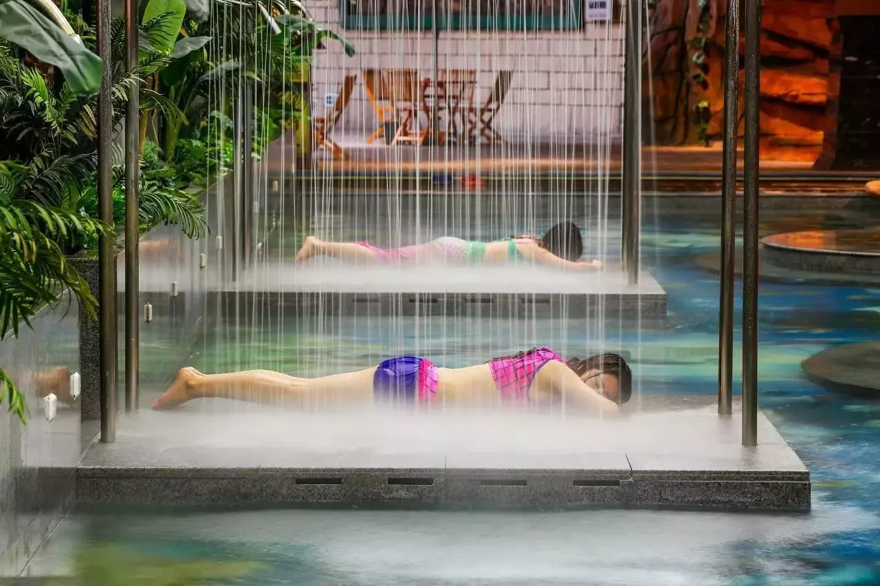 水療按摩池是整個溫泉區(qū)人氣最旺的湯池,廣受游客喜愛,水柱打在身上有按摩的功效,如果你是“小身板”要慎重體驗,一不小心就會被“打趴下”。
