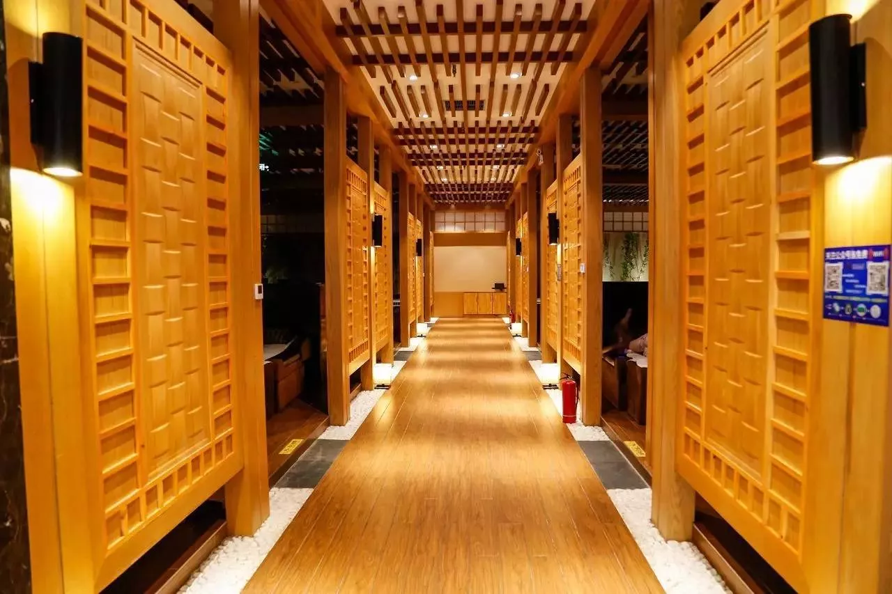 從汗蒸區(qū)西側(cè)過道通往客房區(qū),舒適的休息環(huán)境、低調(diào)奢華的裝修風格,淡雅別致的一事一物,遠離市區(qū)的喧囂,給你的心情真正放個假。
