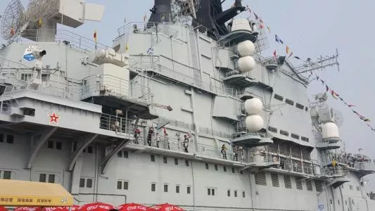 天津?yàn)I海航母主題公園是軍迷們尤其是航母迷們向往的地方,在那里可以領(lǐng)略到不同風(fēng)景,在近觀艦體的一瞬間你就會(huì)被一個(gè)大字振捍,登上甲板的一剎那你會(huì)被一個(gè)“闊”字折服,從甲板看海水你會(huì)被一個(gè)“高”字嚇到。
