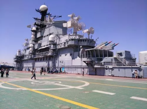基輔”號(hào)航母建造于1970年,1975年建成服役,1994年退役,一度是前蘇聯(lián)海軍的象征。航母全長(zhǎng)273.1米,寬52.8米,全高61米,艦載飛機(jī)33架,船體以甲板為界,艦島上8層、甲板以下9層,全艦共17層。2000年5月“基輔”號(hào)航母告別了俄羅斯,由上海救撈局拖輪拖離,102天后的8月29日抵達(dá)天津,航程16850海里。國(guó)家外經(jīng)商貿(mào)易部2001年1月為航母辦理合法手續(xù),將基輔號(hào)航空母艦改變?yōu)橛^光用途。