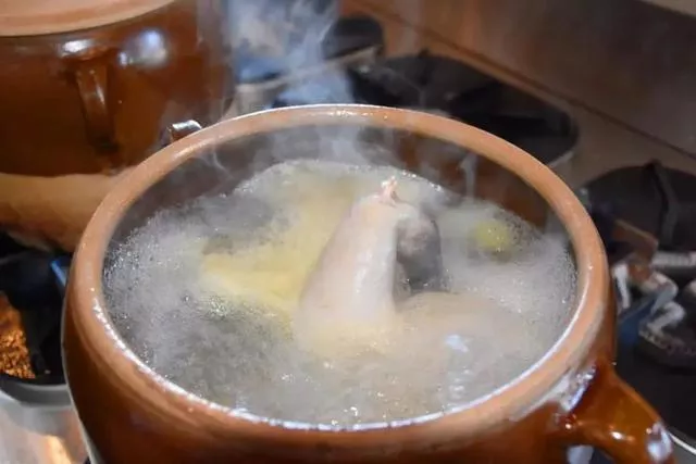 用瓦罐爐火熬制的老雞湯