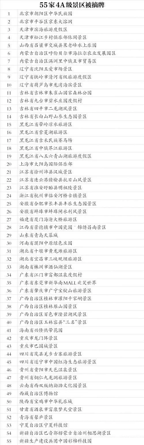255家4A級景區(qū)被處理