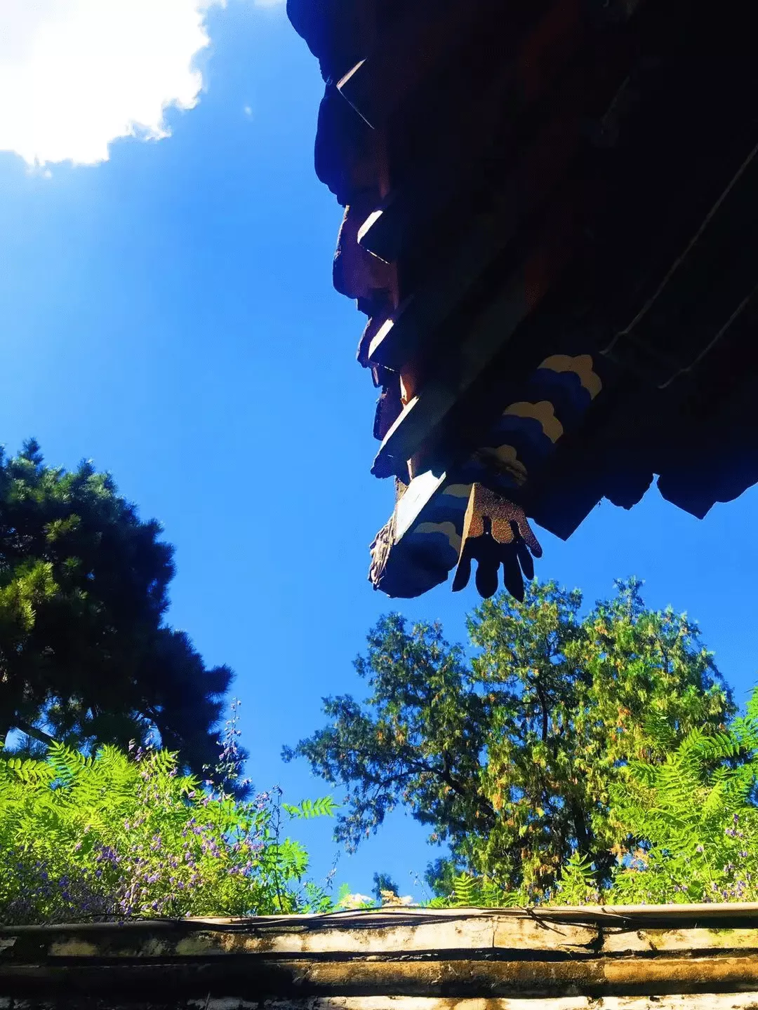 大雄寶殿前,一株松,樹齡約600年。其西側(cè)枝條下垂,層疊有序,長短有致,線條流暢,舒展自然; 其松葉依枝而生,隨枝而附,如毛似羽,梳理般,大輪廓,細(xì)端詳,分明是傳說中鳳凰的長尾,再無他疑。