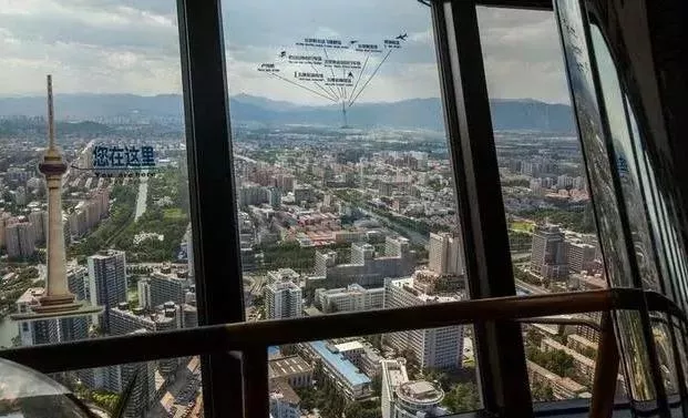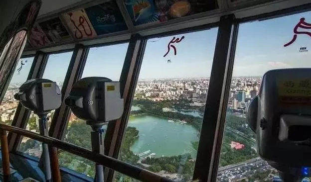 中央廣播電視塔的露天瞭望平臺是世界高塔中最大的,可以360度俯瞰北京城。并且有20倍可自動調(diào)節(jié)的望遠鏡免費提供給游人觀看。緊靠平臺圍墻擺著一排白色的矮凳,這也是中央電視塔的人性化服務(wù)之一——這排矮凳是專門為孩子們設(shè)置的,可以讓他們踩在上面,俯瞰風(fēng)景。站在圍墻邊上,即使是在炎熱無風(fēng)的夏日,也會感到徐徐個清風(fēng)拂面而過。向遠處望去,看到了高樓林立城區(qū),東南方向的長安街,西北面的頤和園,都一目了然。