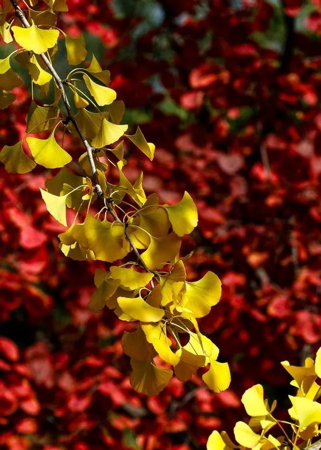 這一眼,紅葉甘愿為銀杏襯托;
