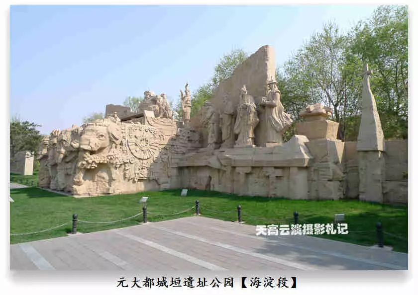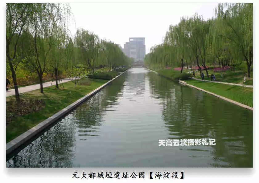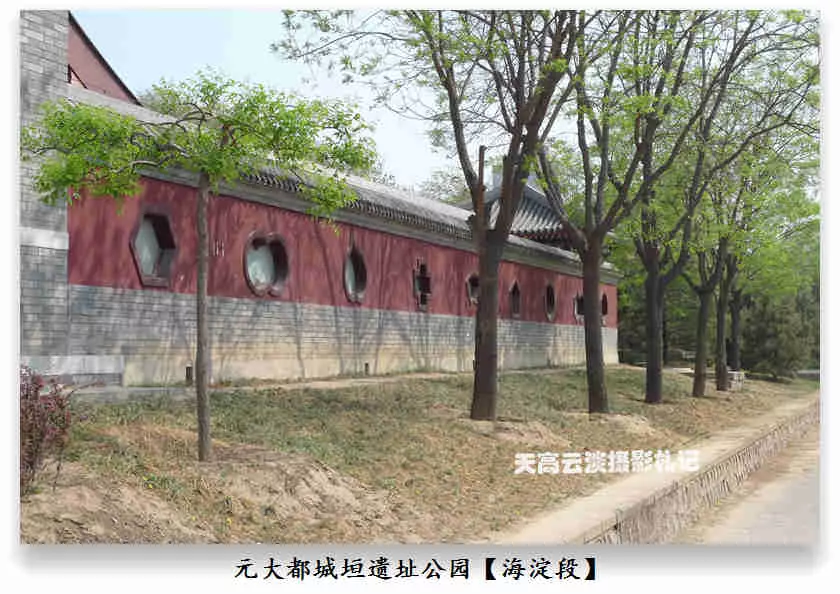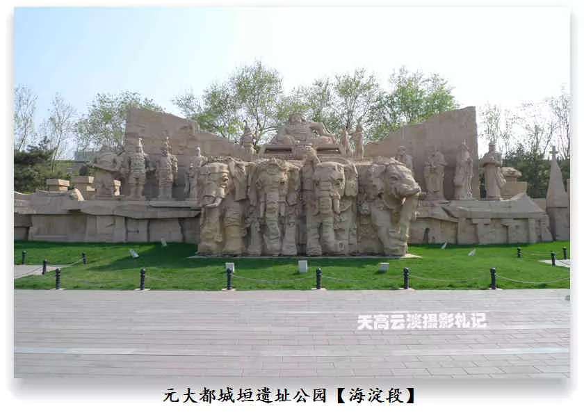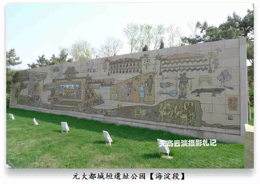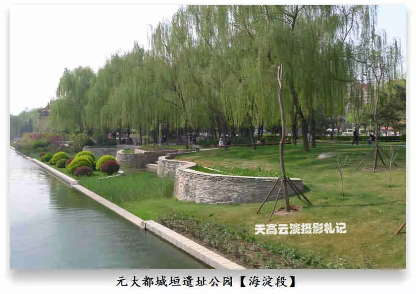 海淀段——元大都城垣遺址公園海淀區(qū)界內(nèi)的元土城遺址公園建成后有十個(gè)景區(qū),分別為:城垣懷古、薊門煙樹、鐵騎雄風(fēng)、薊草芬菲、銀波得月、紫薇入畫、大都建典、水關(guān)新意、鞍韁盛世、燕云牧歌。