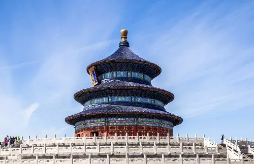 天壇是明、清兩朝皇帝祭天、求雨和祈禱豐年的專用祭壇,是全國(guó)最著名的古建筑之一。壇域北呈圓形,南為方形,寓意“天圓地方”。內(nèi)壇以宮墻分為南北兩部分,北部為“祈谷壇”,是皇帝在春季舉行祈谷大典的場(chǎng)所,祈禱風(fēng)調(diào)雨順、五谷豐登,主要建筑有祈年殿皇乾殿、東西配殿、祈年門、神廚、宰牲亭、七十二長(zhǎng)廊等。