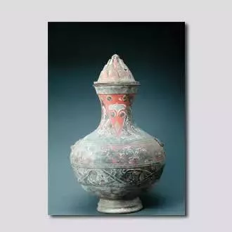 彩繪鋪首博山蓋陶壺