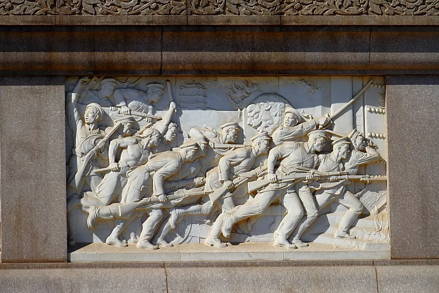 建造過程中,范文瀾專門為雕刻家們作報告,發(fā)給每人一本《中國近代史》。他說:“紀(jì)念碑是一項偉大的工程,要完成這項任務(wù),只有了解百年中國歷史概況,才能明白每件作品在歷史上所占地位?!?958年4月22日,人民英雄紀(jì)念碑落成,呈現(xiàn)在紀(jì)念碑底座上的十塊浮雕,栩栩如生。