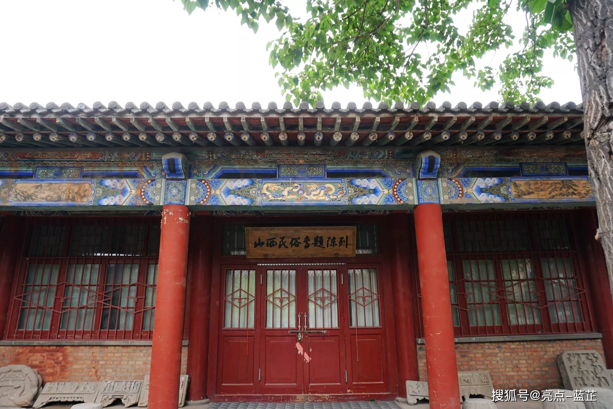 大殿周圍綠地中古木森森、花草郁郁,許多山西省各地收集的文物整齊的放置于場(chǎng)院之中,滿院里堆放著石雕、木雕及其他。有石獅、佛像、拴馬柱、標(biāo)識(shí)柱、上馬石、石碑、石屏、石經(jīng)幢、石礎(chǔ)等石頭系列,五花八門林林總總,也有鐵獅、鐵焚爐、鐵鐘、銅屏等金屬家族,是貨真價(jià)實(shí)的民俗博物館。在那紫藤纏枯柏之間地上是各式各樣的石制物件,感覺是十分奇特的野趣。