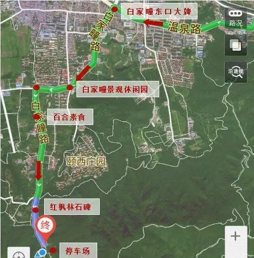 1.沿溫泉路行駛至白家疃村