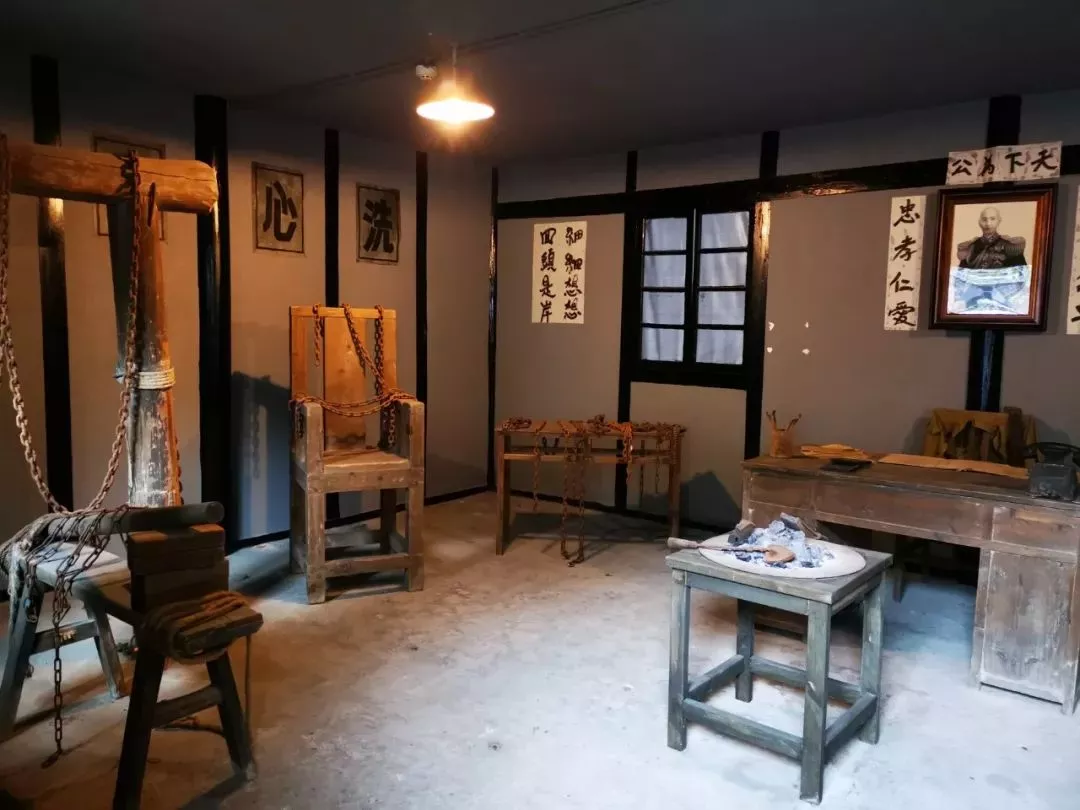 我們三人幾乎成了“落湯雞”,全身被淋濕,旅游面包車將我們拉到渣滓洞,其實渣滓洞原為一小煤窯,因渣多煤少而得名。1943年,軍統(tǒng)逼死礦主霸占煤窯設立看守所,將白公館的政治犯全部遷于此地關押,分內外兩院。外院為特務辦公室、刑訊室等。內院一樓16間房間為男牢,另有兩間平房為女牢。當我們來到刑訊室,看到那一種種狠毒的刑具時,頓時毛骨悚然。里面陰森森的,有老虎凳、鋼鞭、火刑等等。這些都是喪心病狂的特務折磨革命者的刑具。這里關押的有“六一”大逮捕案,“小民革”案,“挺進報”案,上下川東三次武裝起義失敗后被捕的革命者。如江竹筠、許建業(yè)、何雪松等。最多時關押達三百多人,1949年11月27日,國民黨特務在潰逃前夕,策劃了震驚中外的大屠殺,僅15人脫險。