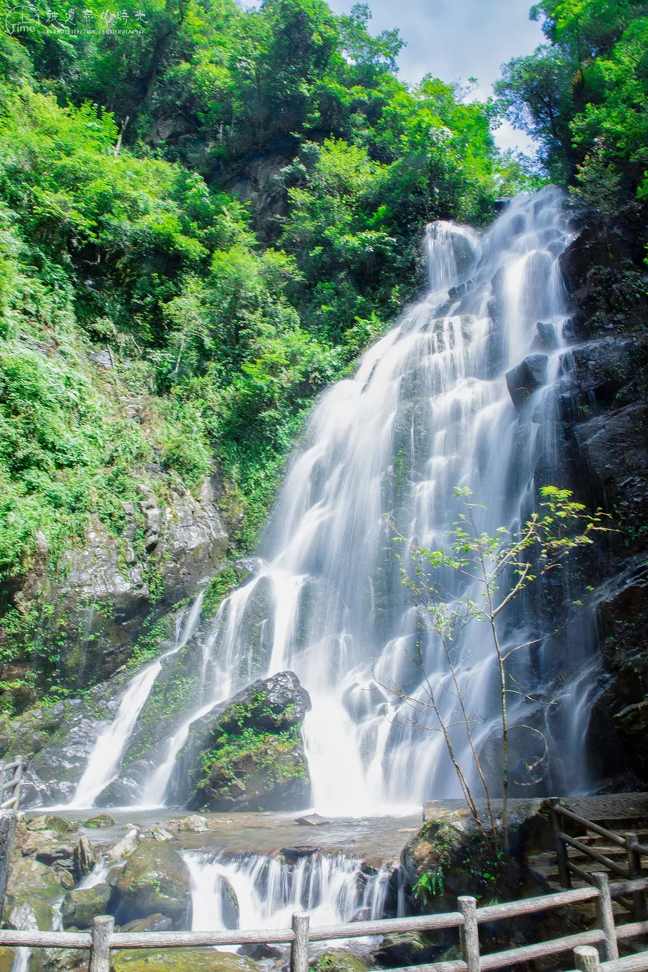 走過了幾千級臺階,到達那瀑布的腳下。撲面的水珠似無數(shù)的精靈在你周圍飛舞,當手指觸摸到那冰冷刺骨卻帶著生命靈氣的瀑布時,整個人都酥軟了。燥熱的夏天心中的那一團烈火,也在漫天飄散的水珠中被澆滅。