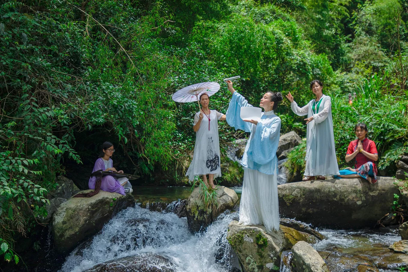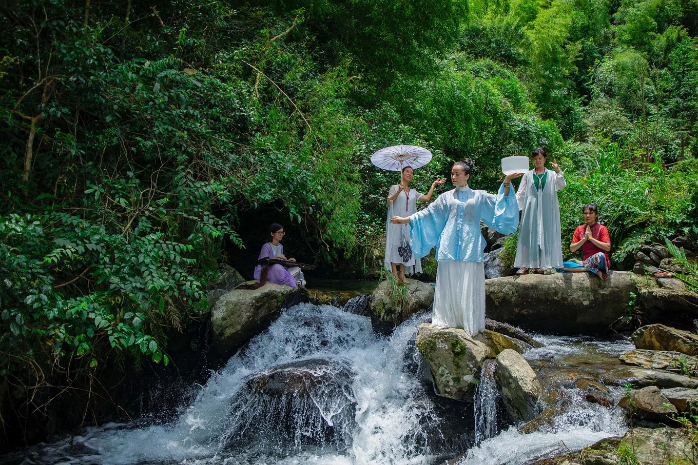 “仁者愛山,智者愛水?!毙凶咴邳S沙瑤族鄉(xiāng)秘境峽谷,有一種仙的飄逸,佛的靈動。行走山間峽谷,水滴聲、溪流聲、瀑落聲、鳥鳴聲,此起彼伏,聲聲迭起,臨坐溪上,品茗聽音,山水之樂無外乎于此矣!