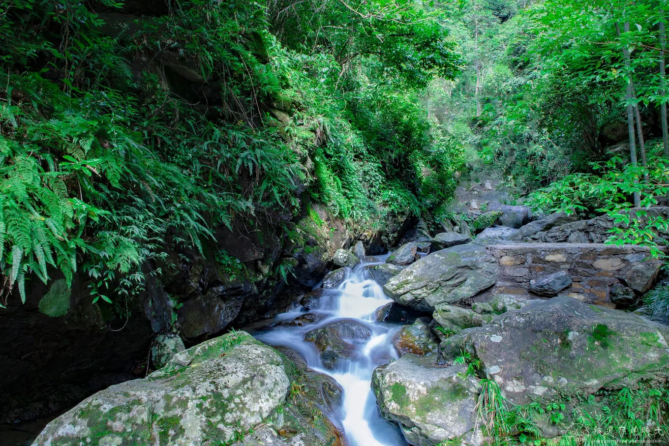 溪谷激起的陣陣波瀾蕩漾身后,與奇巖怪石的碰撞更顯出水的靈動。溪流在峽谷間涌動,在綠色中澎拜前行,給這里靜秀的山間更增加一份激情。